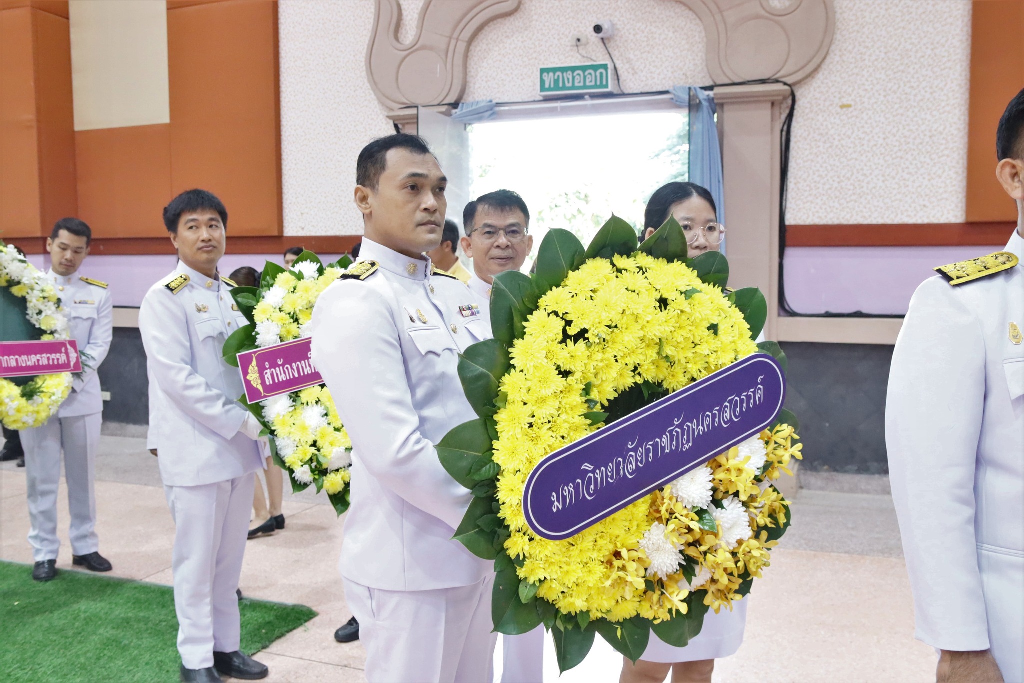 วันที่ ๑๓ ตุลาคม พ.ศ. ๒๕๖๘ ผู้ช่วยศาสตราจารย์ ดร.ไชยรัตน์ ปราณี อธิการบดีมหาวิทยาลัยราชภัฏนครสวรรค์ มอบหมายรองศาสตราจารย์ ดร.สาธร ทรัพย์รวงทอง รองอธิการบดีฝ่ายบริหารและยุทธศาสตร์ พร้อมด้วยผู้ช่วยศาสตราจารย์ ดร.มงคล ศัยยกุล ผู้อำนวยการสำนักศิลปะและวัฒนธรรม, นายปริญญา จั่นเจริญ นักวิชาการศึกษาชำนาญการ และนางสาวศุภรสวรรค์ รอเพ็ชร์ นักวิชาการศึกษา เข้าร่วมพิธีสวดพระพุทธมนต์และพิธีทำบุญตักบาตรถวายพระราชกุศล และพิธีวางพวงมาลาและถวายราชสดุดี เนื่องใน “วันนวมินทรมหาราช” โดยมี นายศุภมิตร ชิณศรี ผู้ว่าราชการจังหวัดนครสวรรค์ เป็นประธานในพิธี ณ อาคารอเนกประสงค์ สัมมนาและจัดแสดงนิทรรศการ บึงบอระเพ็ด อำเภอเมืองนครสวรรค์ จังหวัดนครสวรรค์