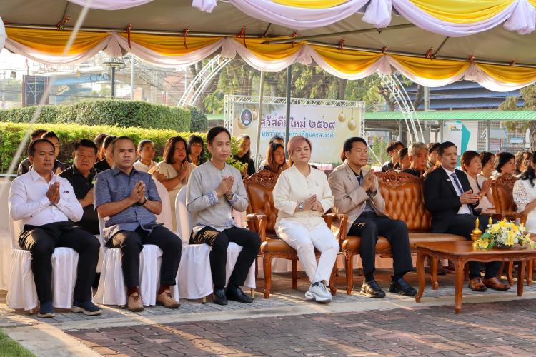 วันที่ ๒๑ มกราคม พ.ศ. ๒๕๖๙ ผู้ช่วยศาสตราจารย์ ดร.ไชยรัตน์ ปราณี อธิการบดีมหาวิทยาลัยราชภัฏนครสวรรค์ พร้อมด้วยคณะผู้บริหาร คณาจารย์ บุคลากรและนักศึกษา ร่วมทำบุญตักบาตรข้าวสารอาหารแห้งแด่พระสงฆ์และสามเณร ๓๙ รูป เนื่องในวาระอันเป็นศุภมิ่งมงคลขึ้นปีใหม่ ๒๕๖๙ ณ บริเวณลานพระพุทธสัพพัญญูฯ มหาวิทยาลัยราชภัฏนครสวรรค์