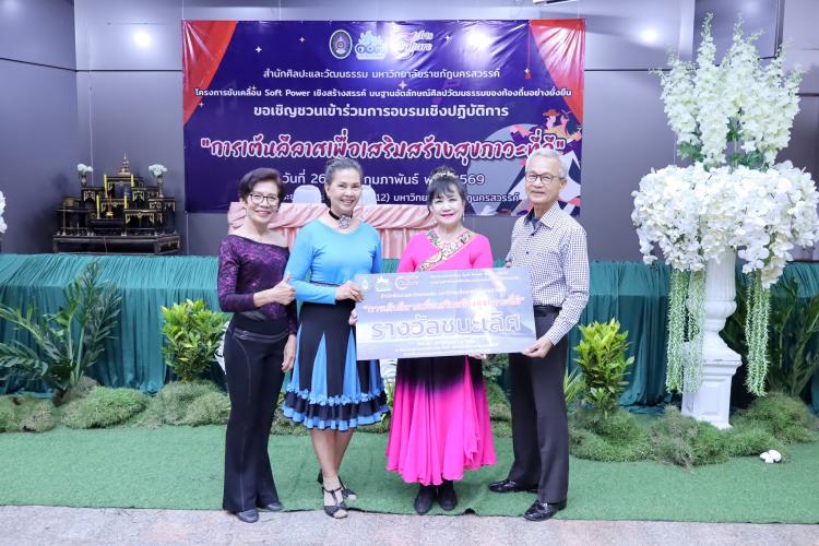 วันที่ ๒๖ กุมภาพันธ์ พ.ศ. ๒๕๖๙ ผู้ช่วยศาสตราจารย์ ดร.มงคล ศัยยกุล ผู้อำนวยการสำนักศิลปะและวัฒนธรรม เป็นประธานในพิธีเปิดโครงการขับเคลื่อน Soft Power เชิงสร้างสรรค์บนฐานอัตลักษณ์ศิลปวัฒนธรรมของท้องถิ่นอย่างยั่งยืน กิจกรรมเสริมสร้างคุณค่าและสร้างสรรค์ เพื่อธำรงคุณค่าด้านศิลปวัฒนธรรมในท้องถิ่น การอบรมเชิงปฏิบัติการ “การสร้างสรรค์ศิลปะการแสดงในรูปแบบการเต้นลีลาศเพื่อเสริมสร้างสุขภาวะที่ดี” โดยมีดร.พิมรา ทองแสง รองผู้อำนวยการสำนักศิลปะและวัฒนธรรม ฝ่ายกิจกรรมและส่งเสริมทำนุบำรุงศิลปะและวัฒนธรรม กล่าวรายงานวัตถุประสงค์ของการจัดกิจกรรม ณ ห้องประชุมร่มพะยอม (ห้อง ๘๑๒) มหาวิทยาลัยราชภัฏนครสวรรค์
